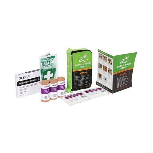 Grab and run design with Snake & Spider Bite treatment contents for those unexpected emergencies.